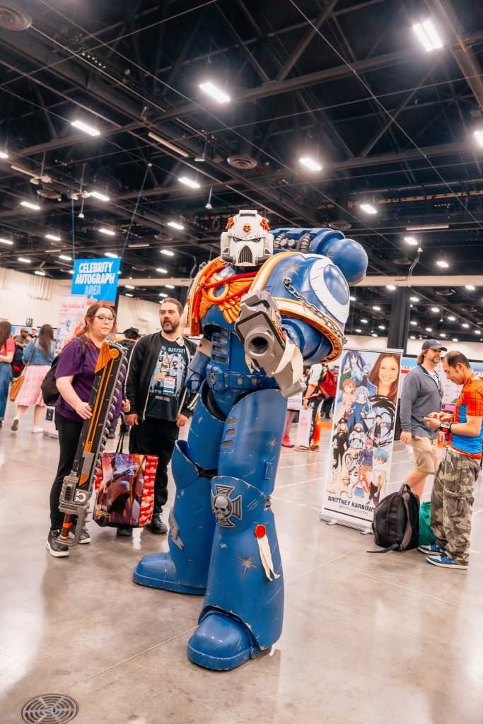 Towering over the others was Peter in his Ultramarines Veteran Space Marine cosplay. The Warhammer franchise has its fair shares of groups and factions, but the Ultramarine blue stood out among the crowd at Calgary Expo. Peter had been inspired by other cosplayers and opted to try cosplay with the intent to explore his limits.