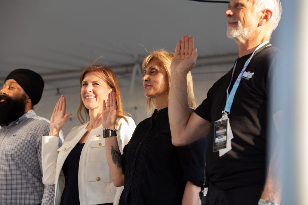 Each GlobalFest includes a citizenship ceremony where forty to fifty people become citizens in front of many festival attendees. Many people were in attendance to oversee the ceremony including Calgary Mayor, Joyti Gondek; Elder Clarence Wolfleg, and Tanya Fir, the Government of Alberta’s Minister of Arts, Culture and Status of Women. Ken Goosen who is the current Chief Operating Officer of GlobalFest was also present for the ceremony. Following the opening introductions the Citizenship Judge, James Clover led the citizenship oath that the new citizens had to recite in order to become Canadian citizens. The ceremony was emotional and cheerful as the new citizens gathered with their friends and family at the end of the synonym.