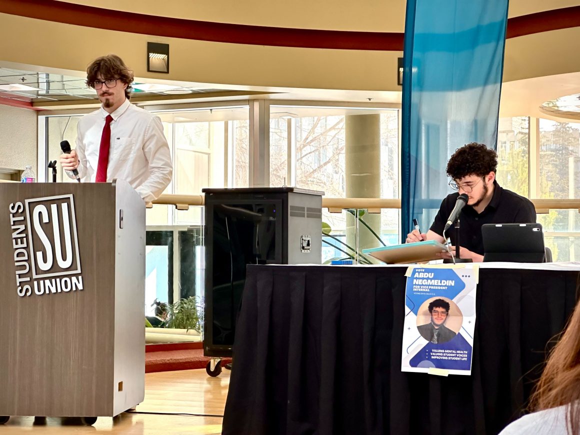 The uncontested Vice President Internal (VPI) candidate, Abdu Negmeldin, began the SUforum on Feb. 26 by discussing his three main platform goals of supporting mental health resources, increasing students accessibility to student leaders and to reduce the bureaucracy of the clubs office.