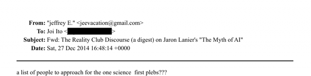 It remains unclear from the trove of documents released if Kauffman had a conversation with Ito or Epstein in regards to any project on artificial intelligence.